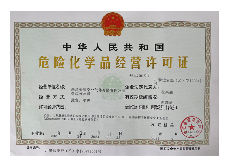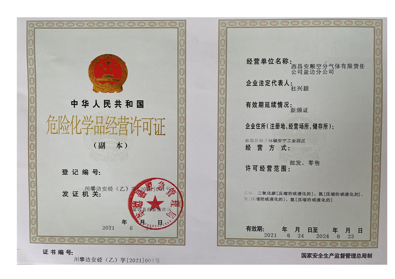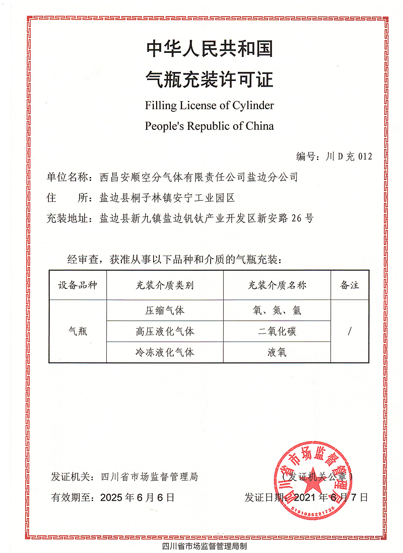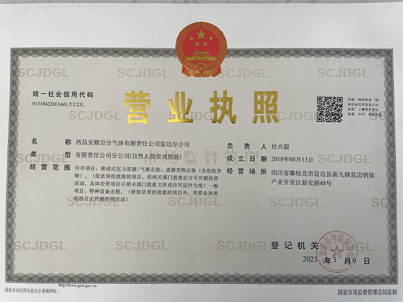 西昌安顺空分气体有限责任公司盐边分公司资质